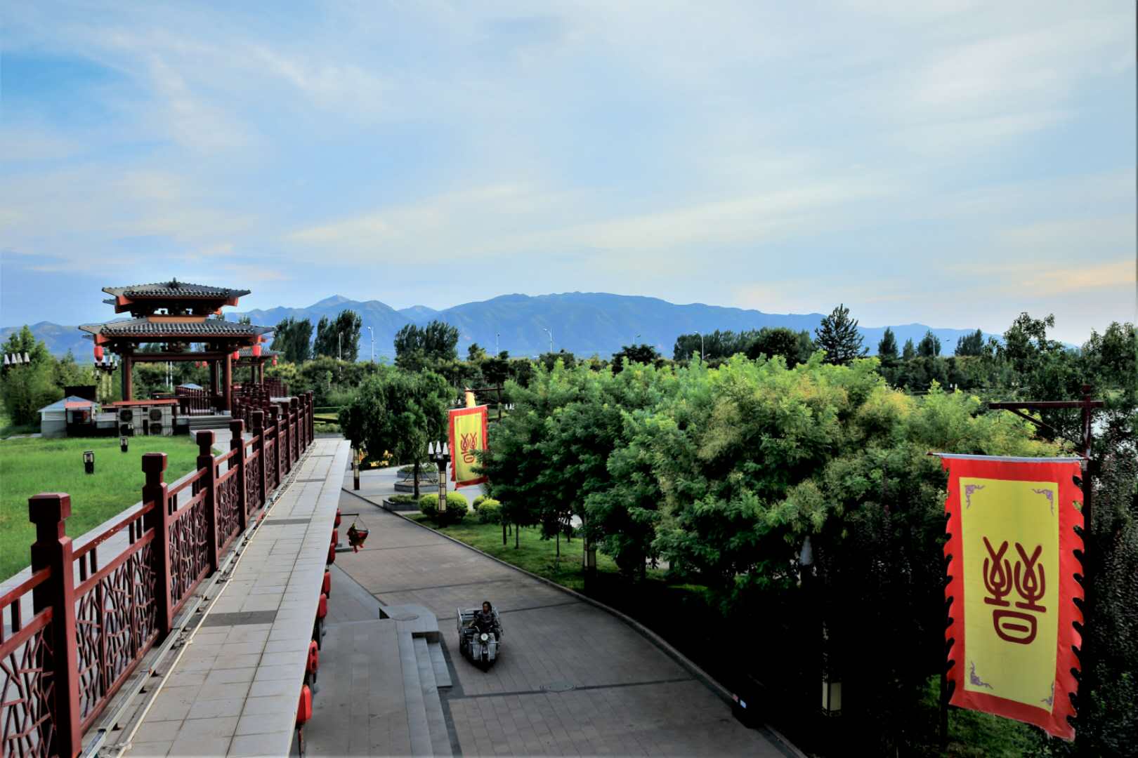 縣境北端的橋山為軒轅黃帝埋骨所在,縣境南端的絳山是晉國的宗山,流經(jīng)東西的滏河、澮河乃晉國的母親河。晉園將曲沃的地域形勝濃縮于內(nèi)。把曲沃的橋山、絳山、澮河、滏河、汾河濃縮在園中假山瀑布。晉園的建筑物,景觀文化無不處處透露出晉文化精髓,如晉國的戰(zhàn)車、園中的成語典故牌、書有出自晉國的成語彩旗、出自晉國文物匜等等都非常具有代表意義。園中景觀展示對于晉文化研究、文化傳承具有重要的意義和價值。