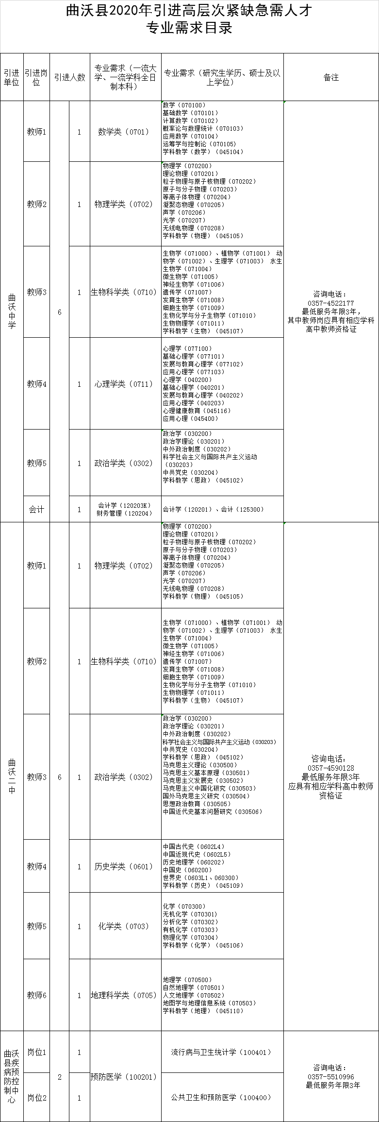 0357-5510996 (曲沃縣疾病預(yù)防控制中心)