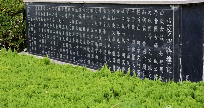 2002年,縣政府在借城市建設(shè)拓寬貢院街之機,本著整舊如舊原則,對四牌樓進行大規(guī)模整體落架維修,并且將古曲沃十景中的四景書寫于牌匾增掛其上,遂使古樓又寓新意。四牌樓也開始以煥然一新的外貌迎接慕名前來瞻仰參觀、緬懷古跡的每一位游客。