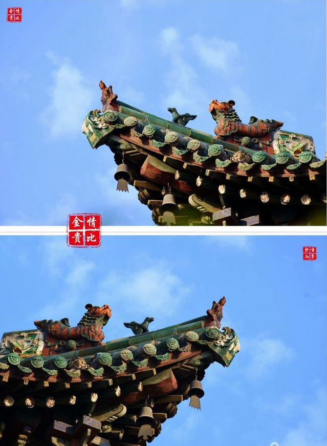 望母樓為樓閣與牌縷混合式建筑,坐北朝南。此樓純系木材構(gòu)建,三重檐十字歇山頂,上覆黃綠相間琉璃瓦,全樓三層十一小樓。她既有江南樓閣精巧纖繡、玲瓏剔透之俊秀,又有北方古建筑的大氣敦厚、雄渾巍峨之壯觀。其構(gòu)思之精,工藝之巧,造形之美,可稱三絕,是具有藝術(shù)價值的古建筑,是曲沃古老文明的象征性建筑。