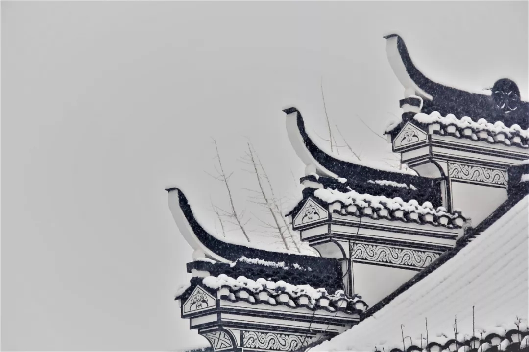 曲橋通幽,黛瓦粉墻更似一幅水墨,除去了斑斕的色彩,更見著真實,莫名便想融進(jìn)這場大雪之中,無聲無息。