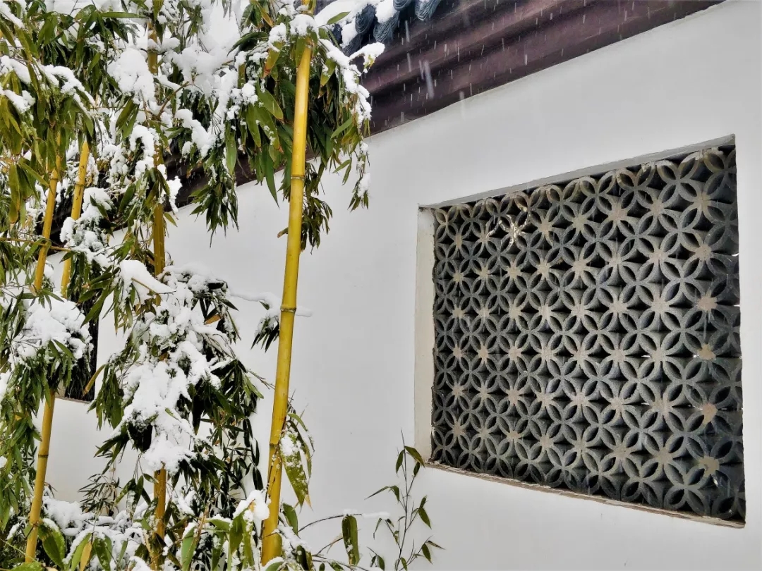 若是障目,便要透景,南方園林總是這么矛盾的可愛,在這雪天透窗而望,擠進(jìn)滿眼的繁華凋落,待來年孕育出新的生機(jī)。
