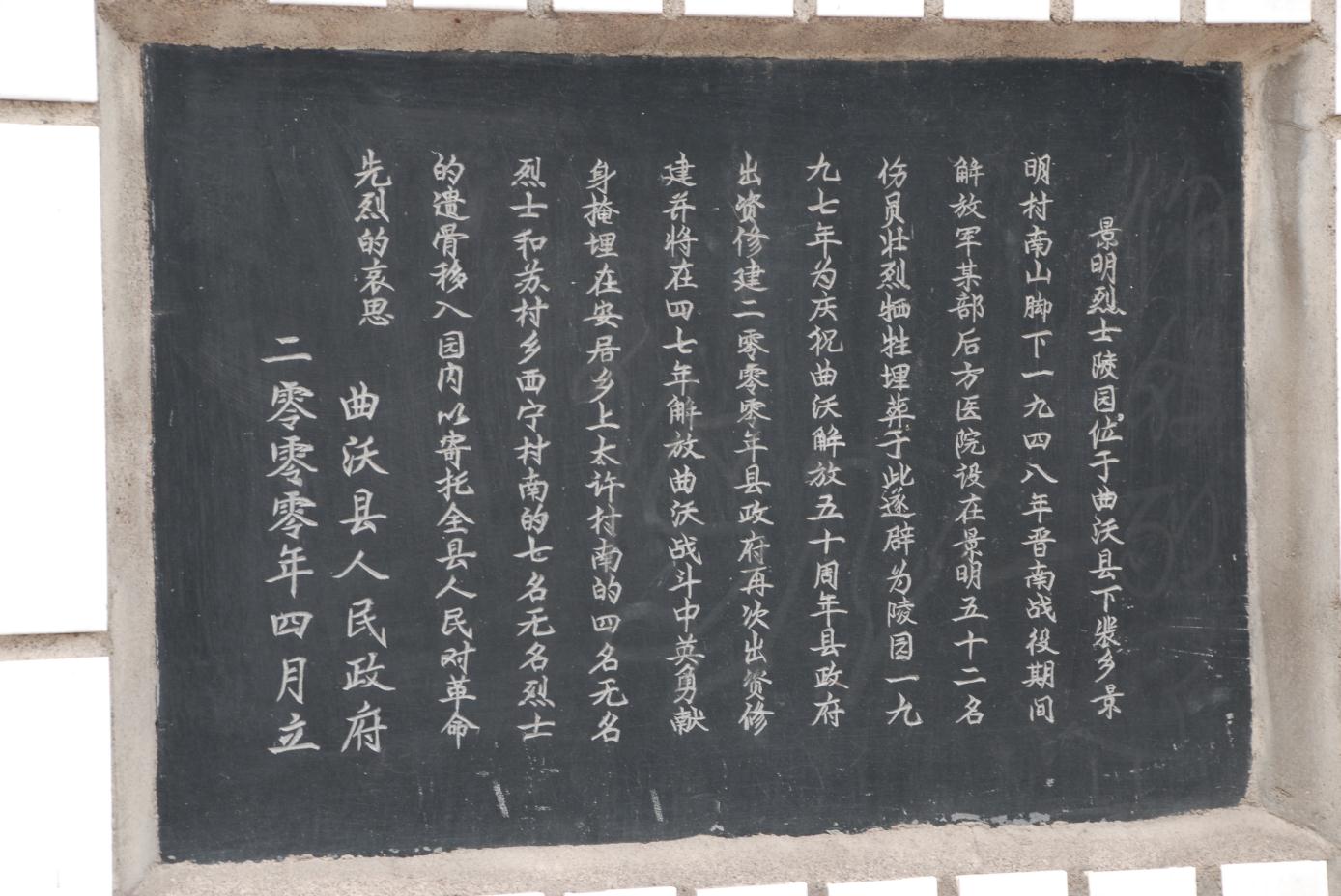 景明烈士陵園,位于北董鄉(xiāng)景明村南山腳下,南依絳山,東臨曲沃第一大景——景明瀑布,北靠東西大路,并建有鄉(xiāng)村汽車站,西南有牡丹園相鄰。