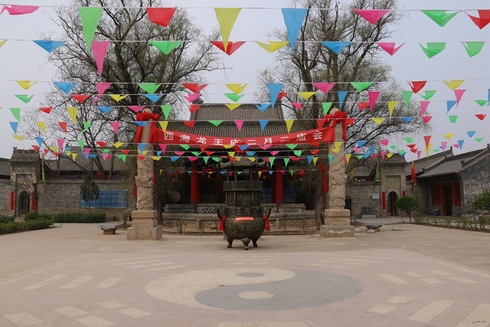龍王廟,位于史村鎮(zhèn)西海村東北30米。屬于清代,縣級文物保護單位。據(jù)《新修曲沃縣志》記載:龍王廟建于清乾隆二十年(1755)。龍王廟面寬三間,進深三間,有獻殿及東西廂房。占地面積36659.5平方米,附屬文物有碑碣6通,廂房塑像1尊。龍王廟,重檐歇山頂,柱頭五鋪作,雙下昂,單幅之要頭,龍頭形要頭。1947年解放曲沃時,司令部設在西海時,當時有人要拆掉龍王廟支援攻城,陳賡司令員聞訊后予以阻止,使古文物得以保存下來。