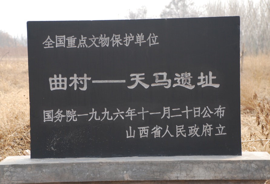 曲村——天馬遺址,位于縣城東北17公里,北依崇山,東、南面為滏河。該遺址覆蓋曲村、天馬、北趙、張4個自然村,東西長3800米,南北寬2800米,共約11平方公里。該遺址共分為四大文化層,涵蓋有新石器時期的仰韶和龍山文化層、夏文化層、西周到戰(zhàn)國文化層及秦漢元明文化層。1992、1993年連續(xù)兩年被評為全國十大考古發(fā)現(xiàn)之一。1996年,被評為國家重點文物保護單位。曲村—天馬遺址不僅規(guī)模宏大,而且延續(xù)的時間較長,經(jīng)過考古學家、歷史學家等方面的初步判斷,此遺址在西周初期就興起,發(fā)展到鼎盛時期是在西周晚期至春秋初期,而到春秋中晚期至戰(zhàn)國早期,卻陡然衰竭下來。